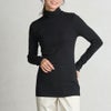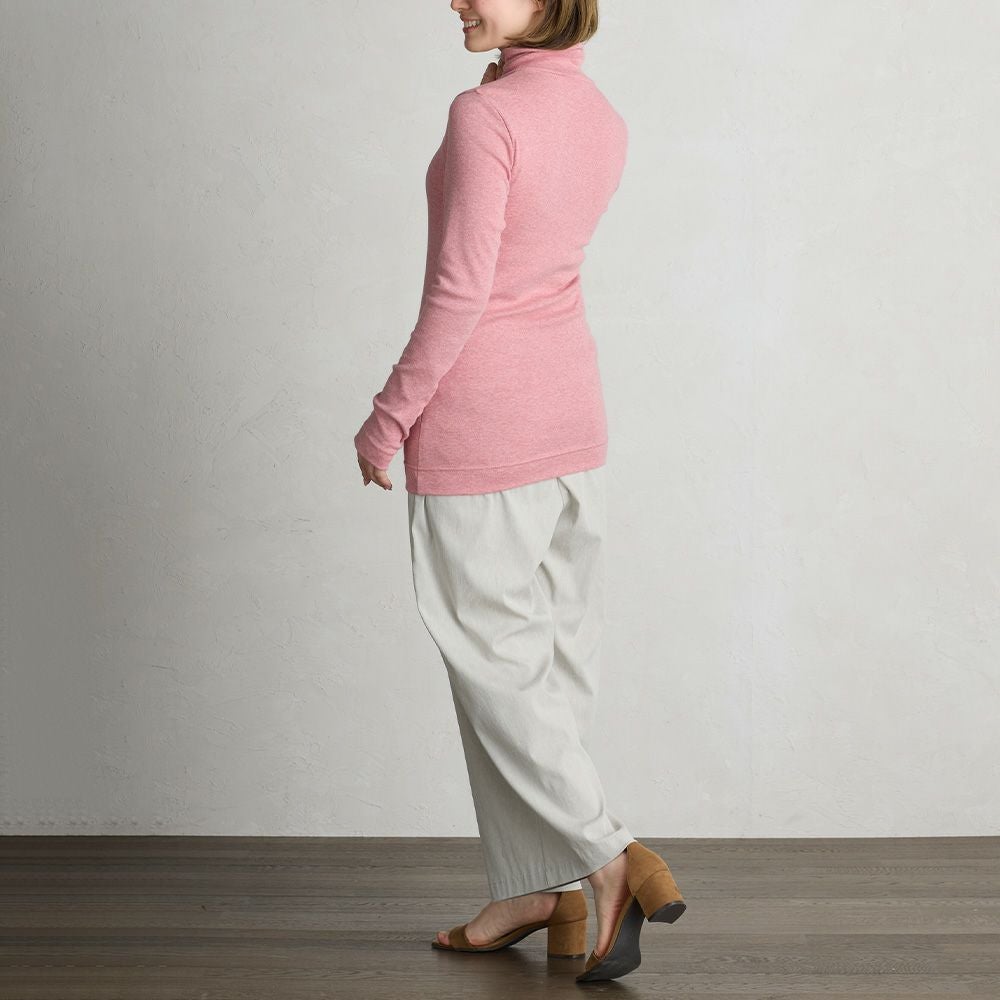 伸縮性に長けた素材を使用したハイネックカットソー。あえて長めの設定の着丈や袖丈は、気になるお尻を隠したり手首でクシュっとさせたり。高身長さんも丈足らずにならずに安心のデザインです。