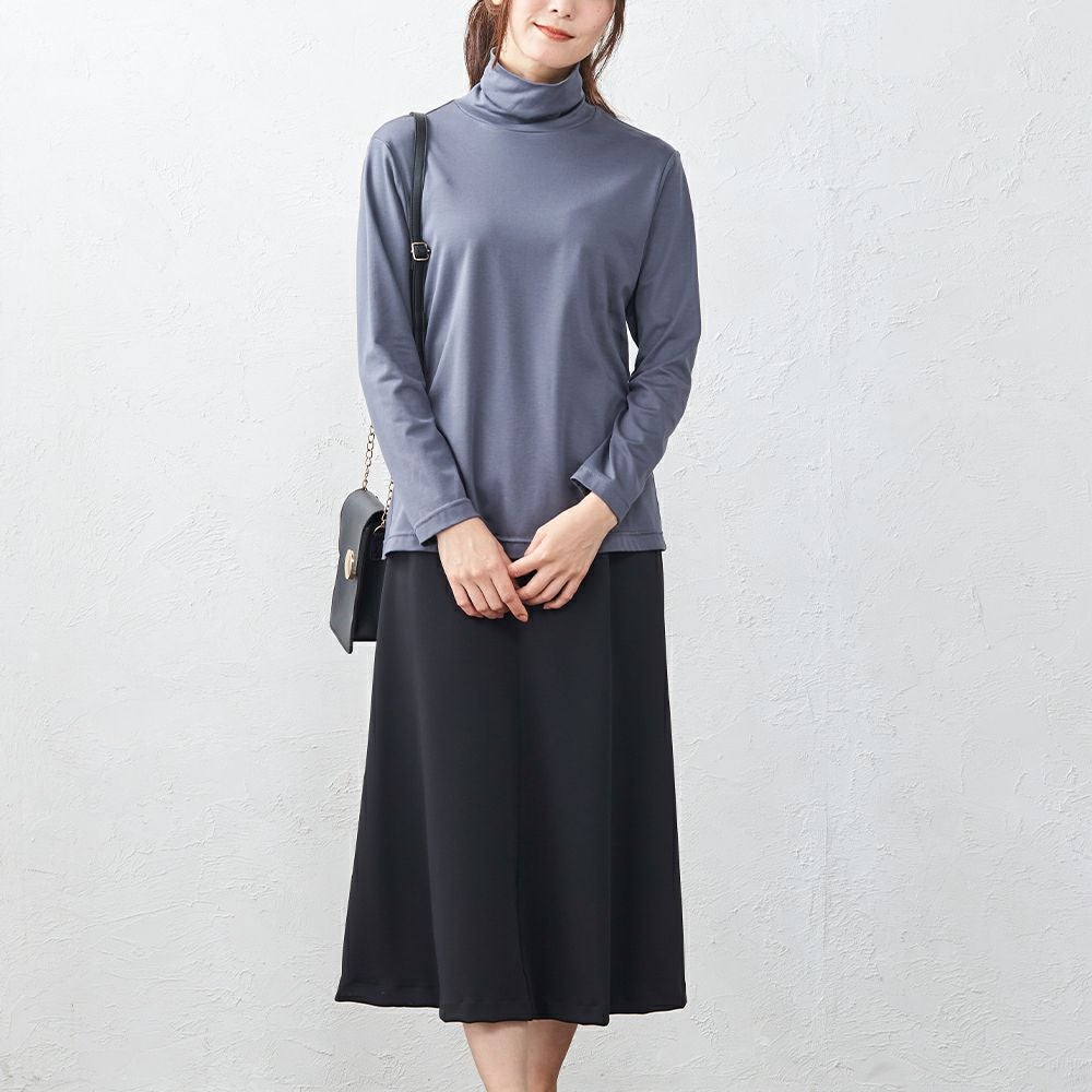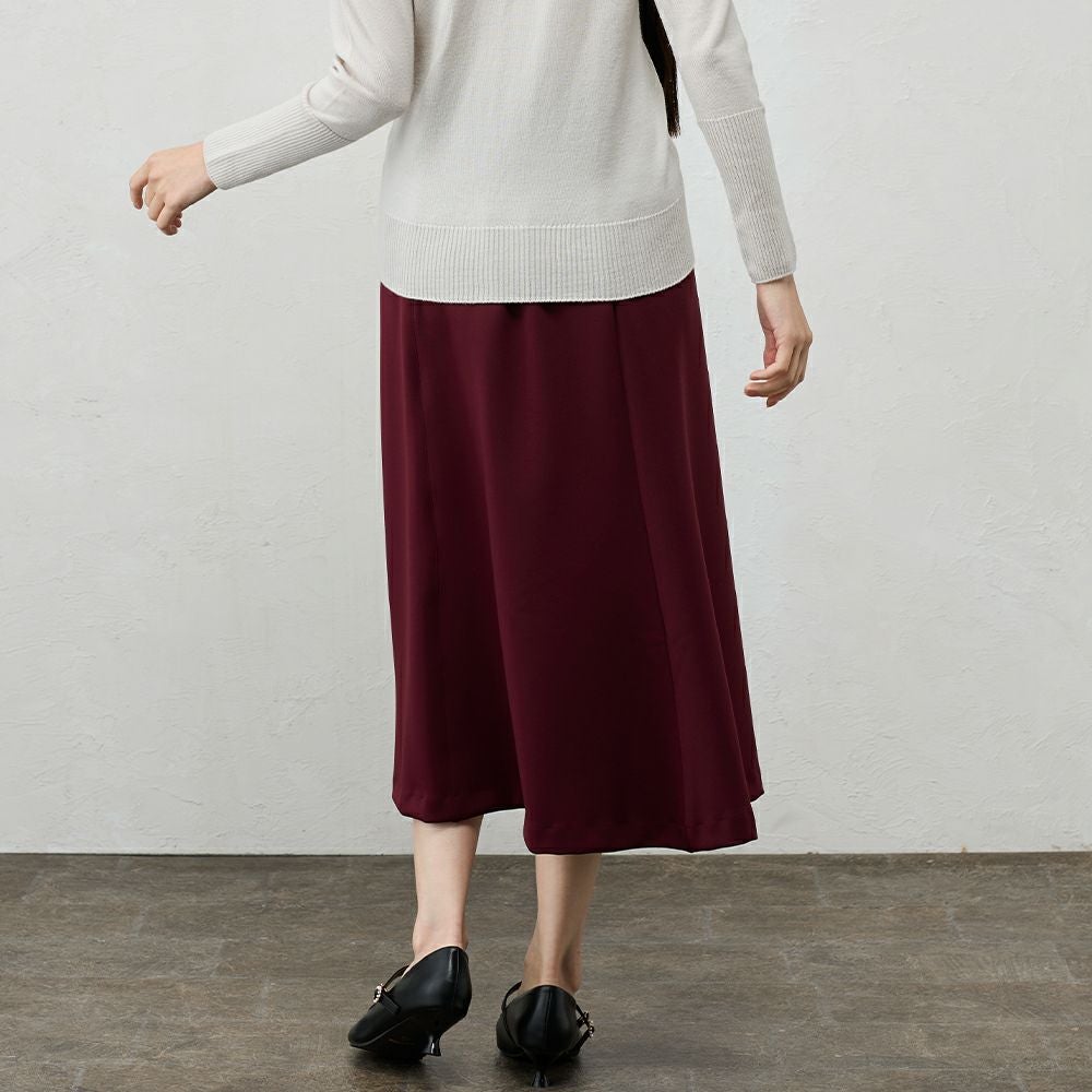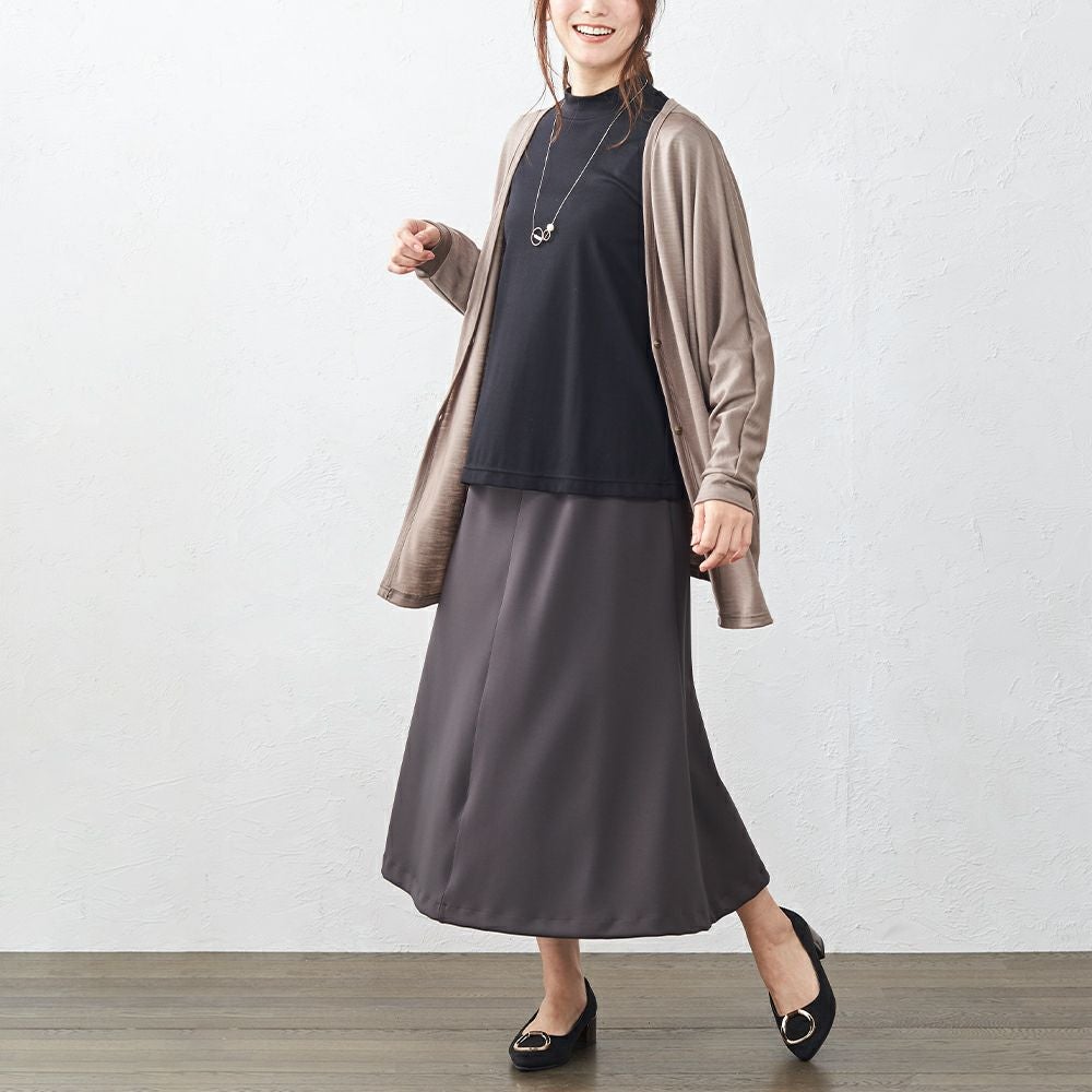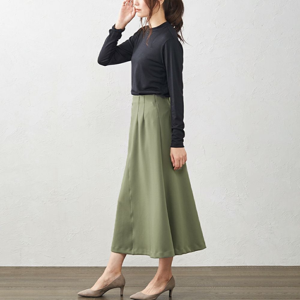 綺麗な落ち感で、上品な雰囲気のフレアスカート ウエストゴムで履きやすく、生地のストレッチも効くので動きやすいスカートです。 上品な光沢がある素材なので、カジュアルはもちろんキレイめやフォーマルなど幅広く着まわしていただけます。