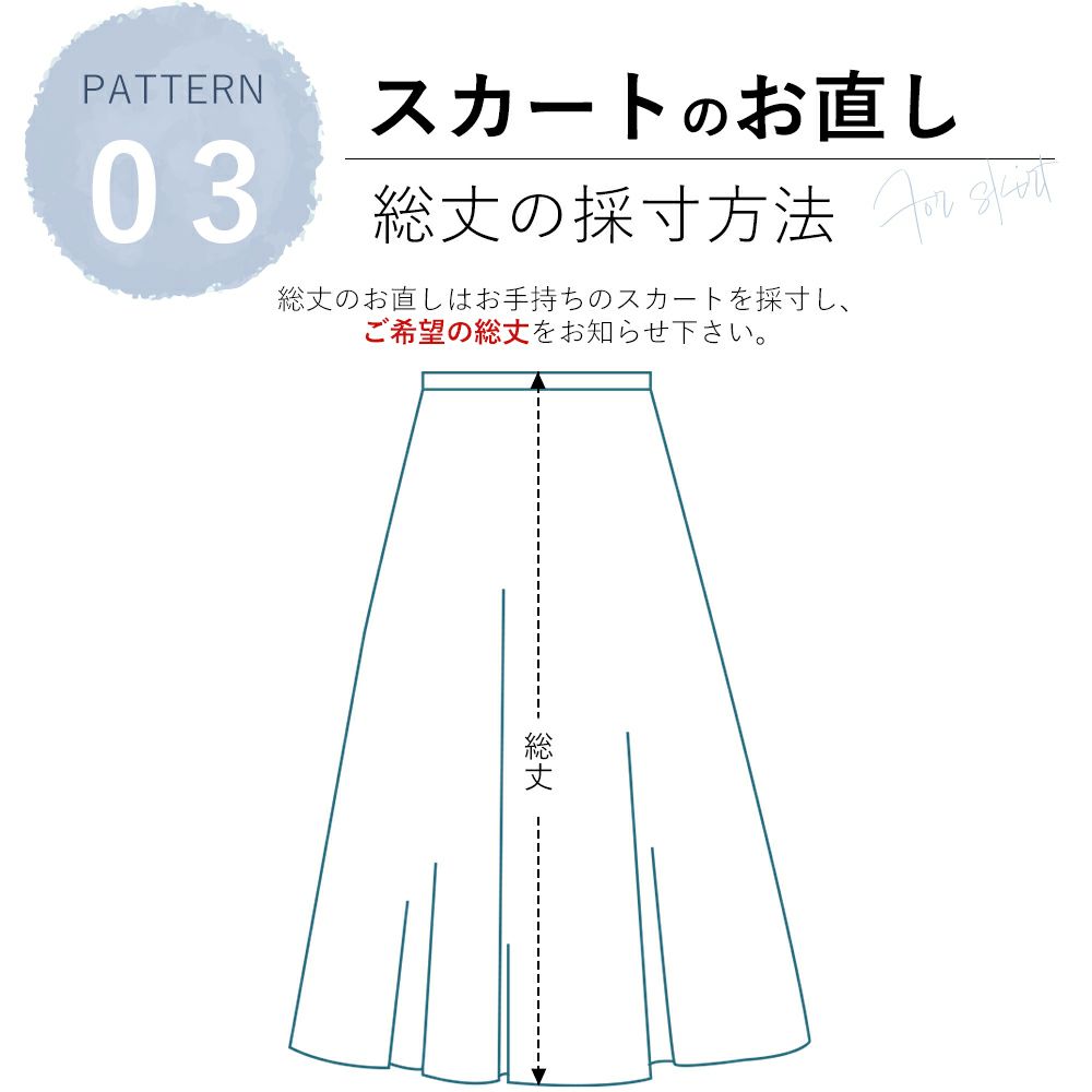 スリット入りのアイテム等一部裾上げの対応が出来ないお洋服が御座います。 また元々の寸法より長くする事も出来ません。 ご不明点やご不安な点等御座いましたらお気軽にお問合せ下さい。 |