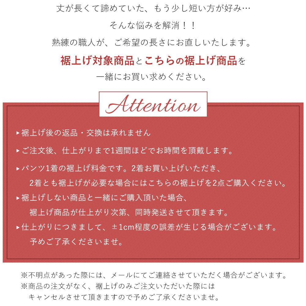 必ず裾上げ希望の商品と一緒にカートに入れた状態でご注文をお願い致します。 裾上げを単品でのご注文の場合はキャンセルさせて頂きます。 |