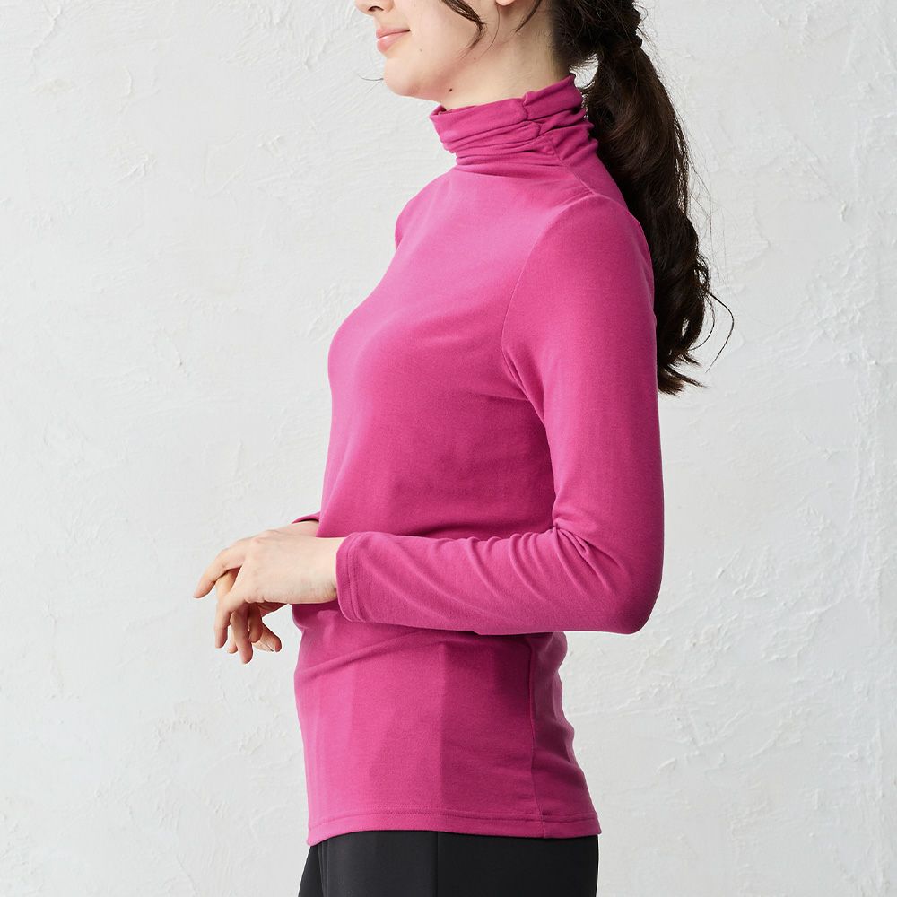 吸湿発熱性と保温性で薄手でもしっかり暖かく、首元を上品に包むタートルネックカットソー コーデにすっきりと馴染む着回し抜群の一枚。 重ね着しやすい滑らかな風合いで、日常の装いを軽やかに整える一枚です。
