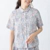 品よく華やぐ、リバティプリント生地を使用した半袖ブラウス。