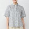 ベルギーなどフランダース地方原産のリネンを使い、リバティプリントで仕立てた半袖ブラウス。