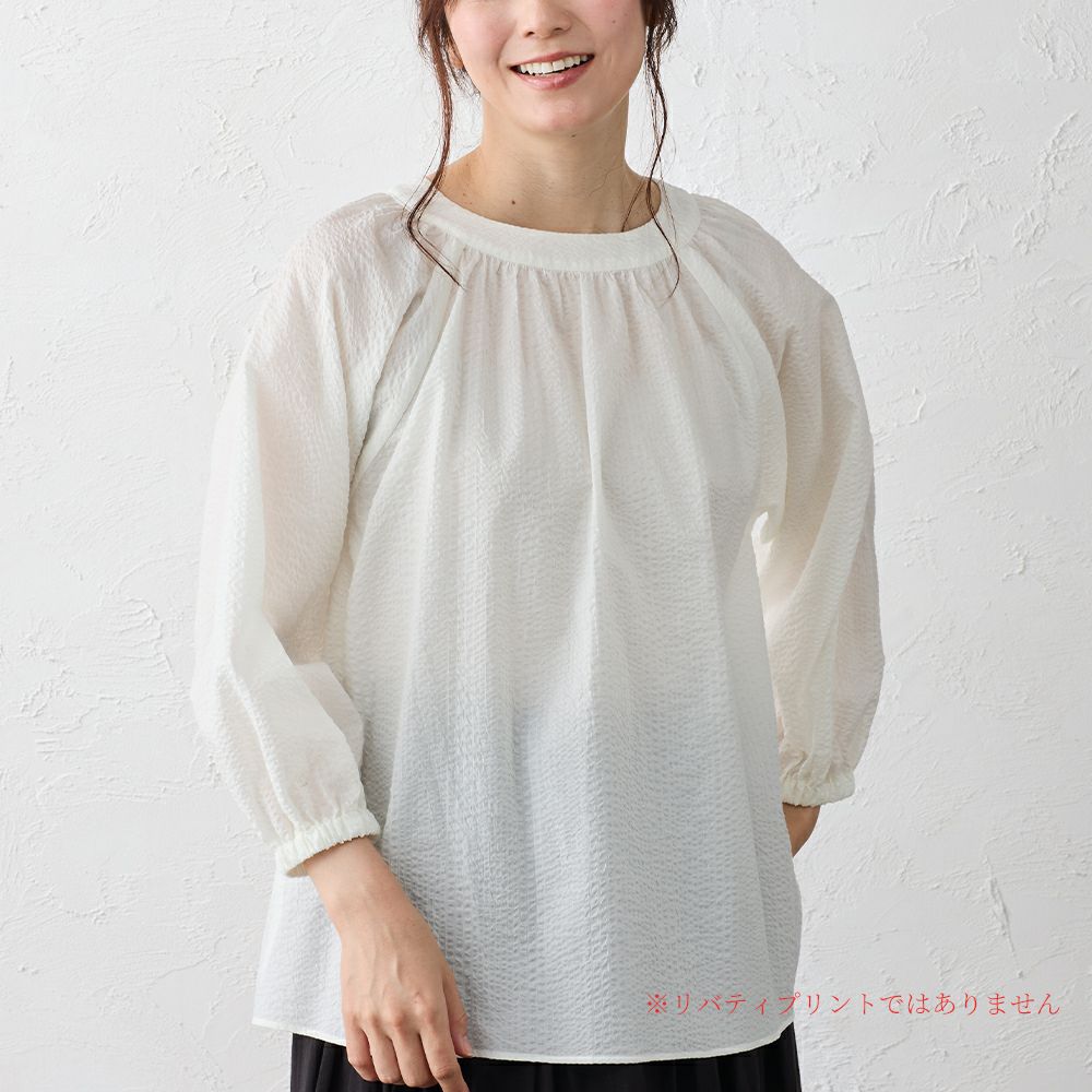 軽やかに空気を含むシルエットが、日常の動きにやさしく寄り添うブラウス リバティプリント ミラクルウェーブ ブラウス