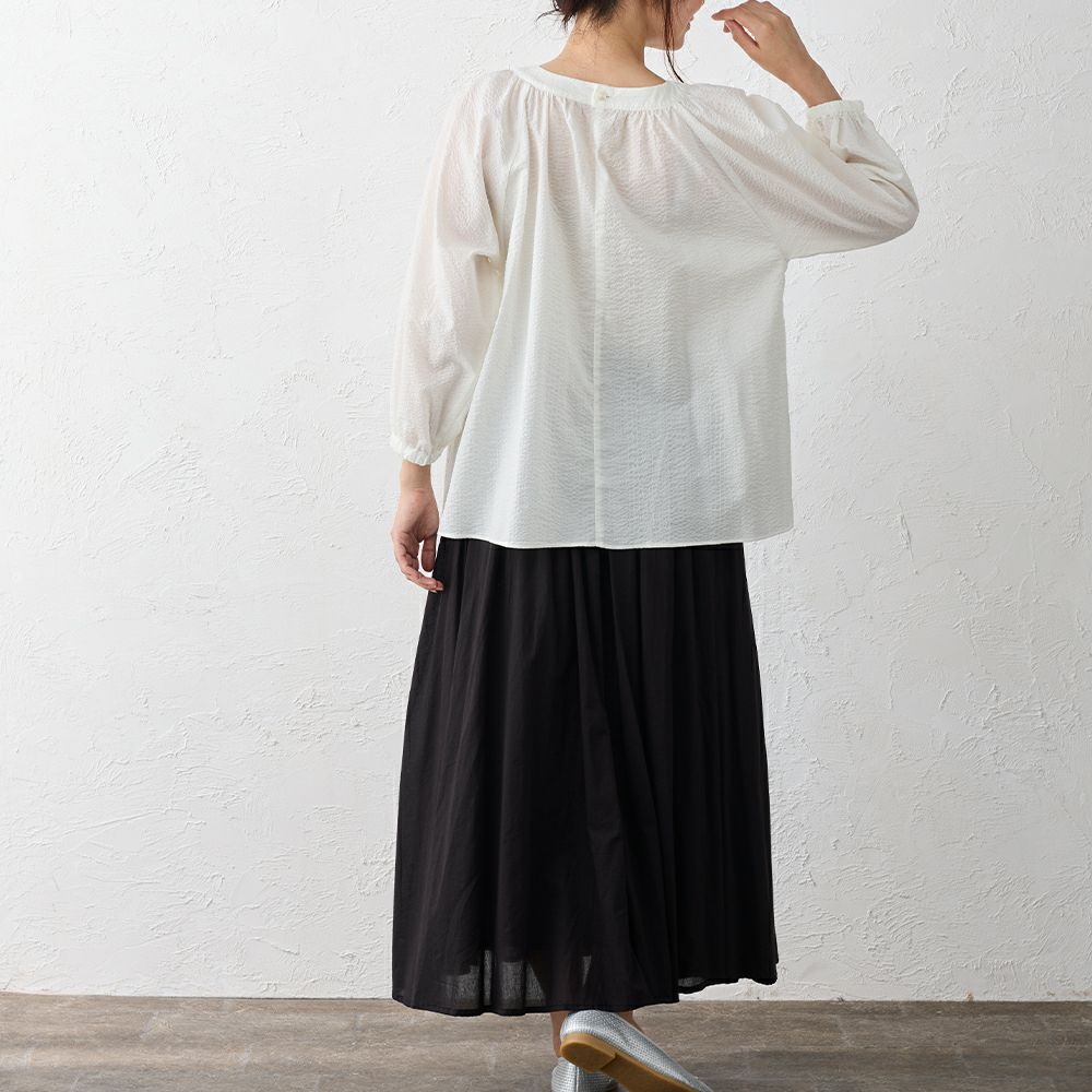 軽やかに空気を含むシルエットが、日常の動きにやさしく寄り添うブラウス。