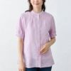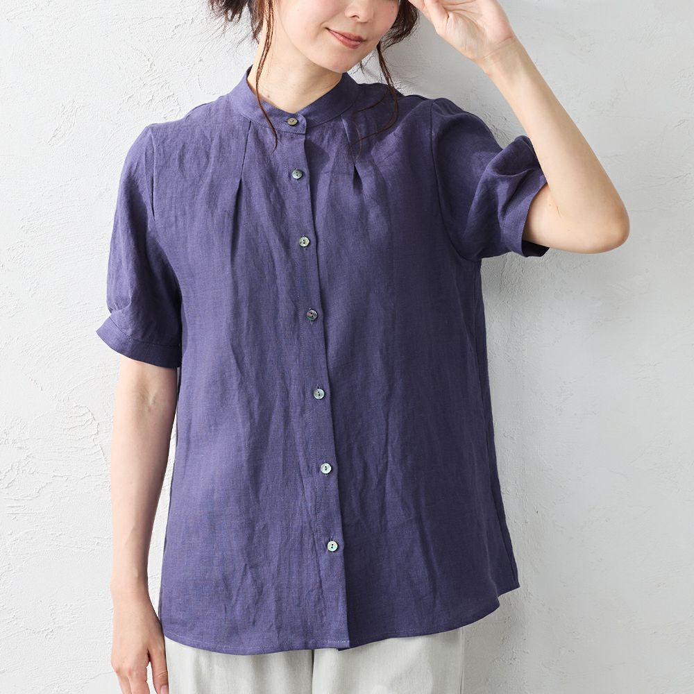 リネンならではの通気性と、着るほどに馴染むやさしい風合いが魅力の半袖ブラウス。 自然な光沢とシャリ感のあるリネンは、通気性・吸湿性に優れ、暑い季節もさらりと快適です。 ストンと落ちるラインで体型を問わず着こなしやすく、リラックス感のある着心地になっています。