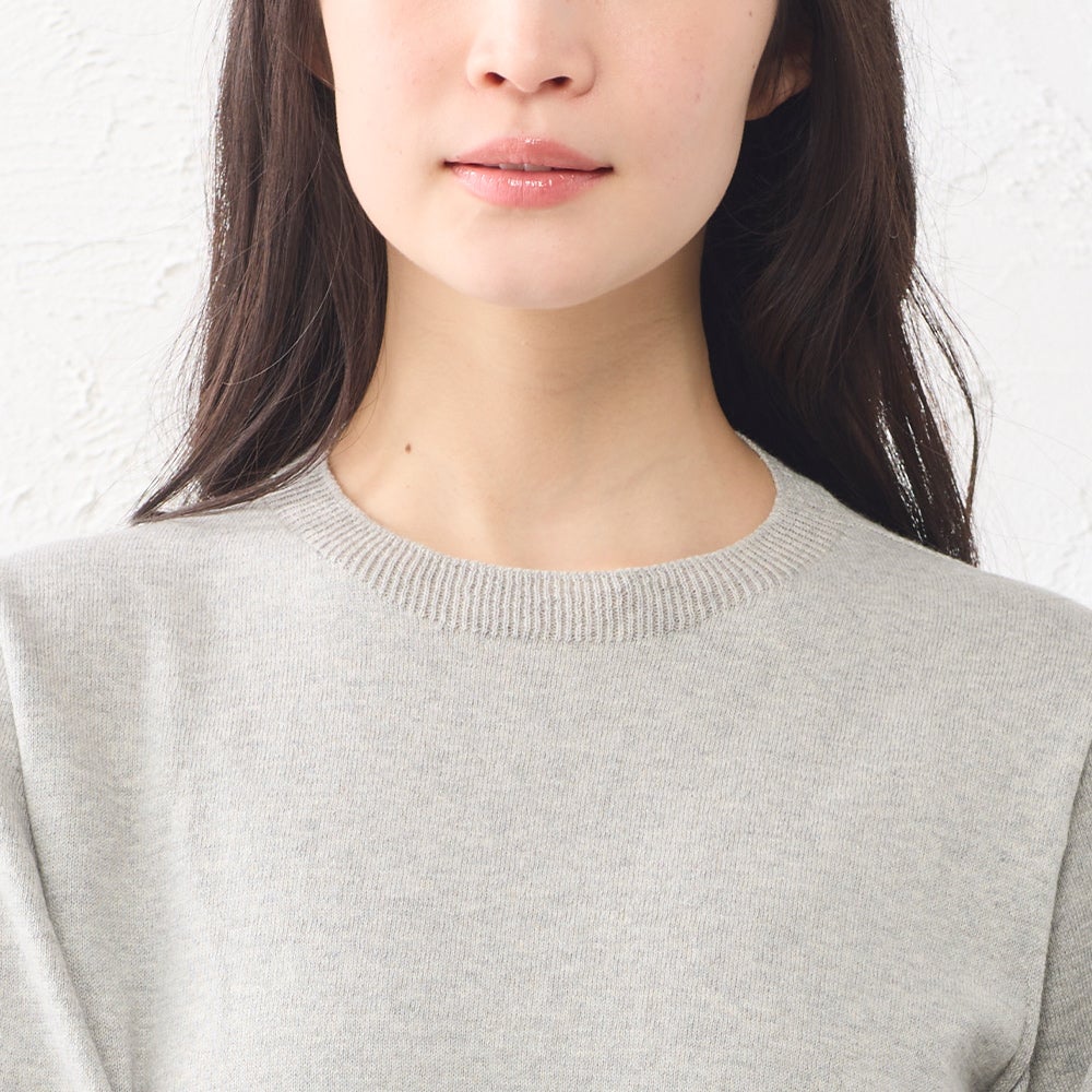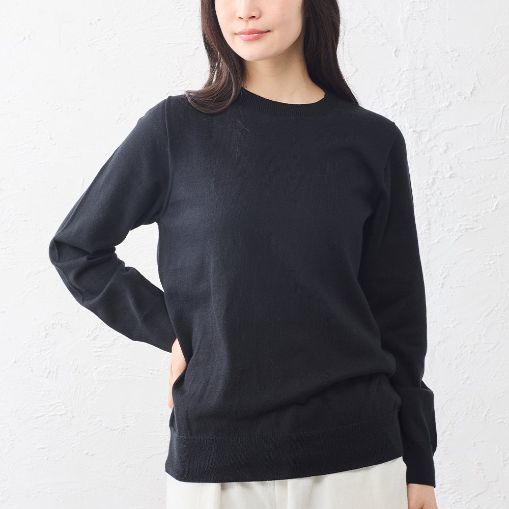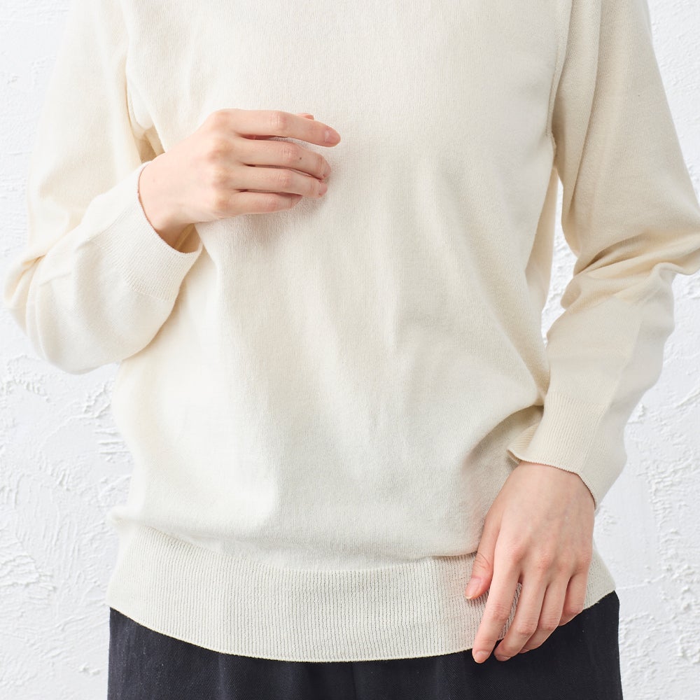 肌にやさしく寄り添う綿100のオーガニックコットンを使用し、毎日心地よく着られる一枚に仕立てました。 農薬や化学肥料に頼らず育てられた綿は、繊維が丸くなめらかで、敏感な肌にもやさしくなじみます。やわらかな風合いと自然な着心地が魅力です。 縫い目のないホールガーメント®製法により、ごろつきや違和感を感じにくく、身体に沿う自然なフィット感を実現。長時間の着用でもストレスなく過ごせます。 シンプルで使いやすいデザインは、1枚着としてもインナーとしても活躍し、幅広いコーデに馴染む定番ニットです。