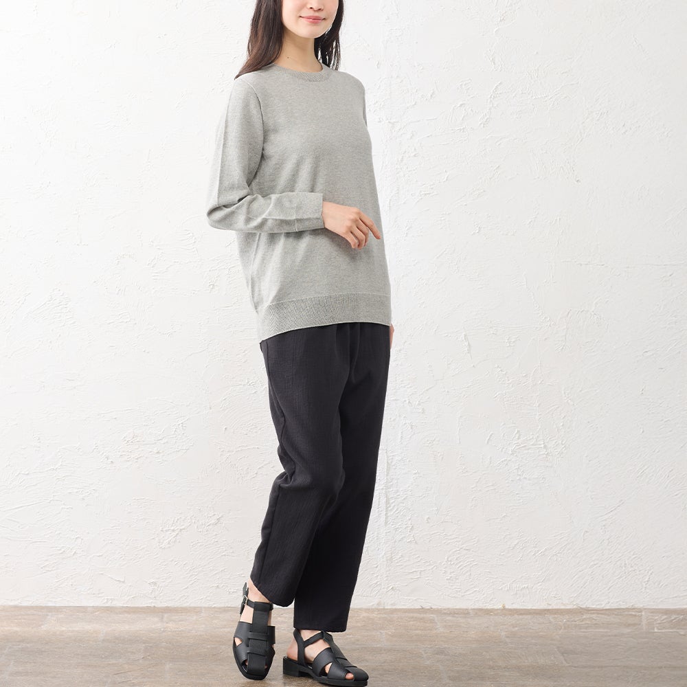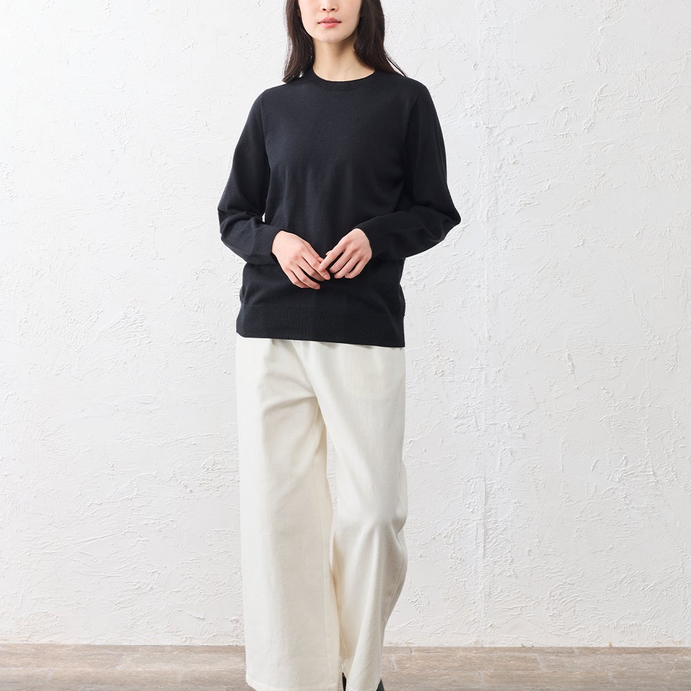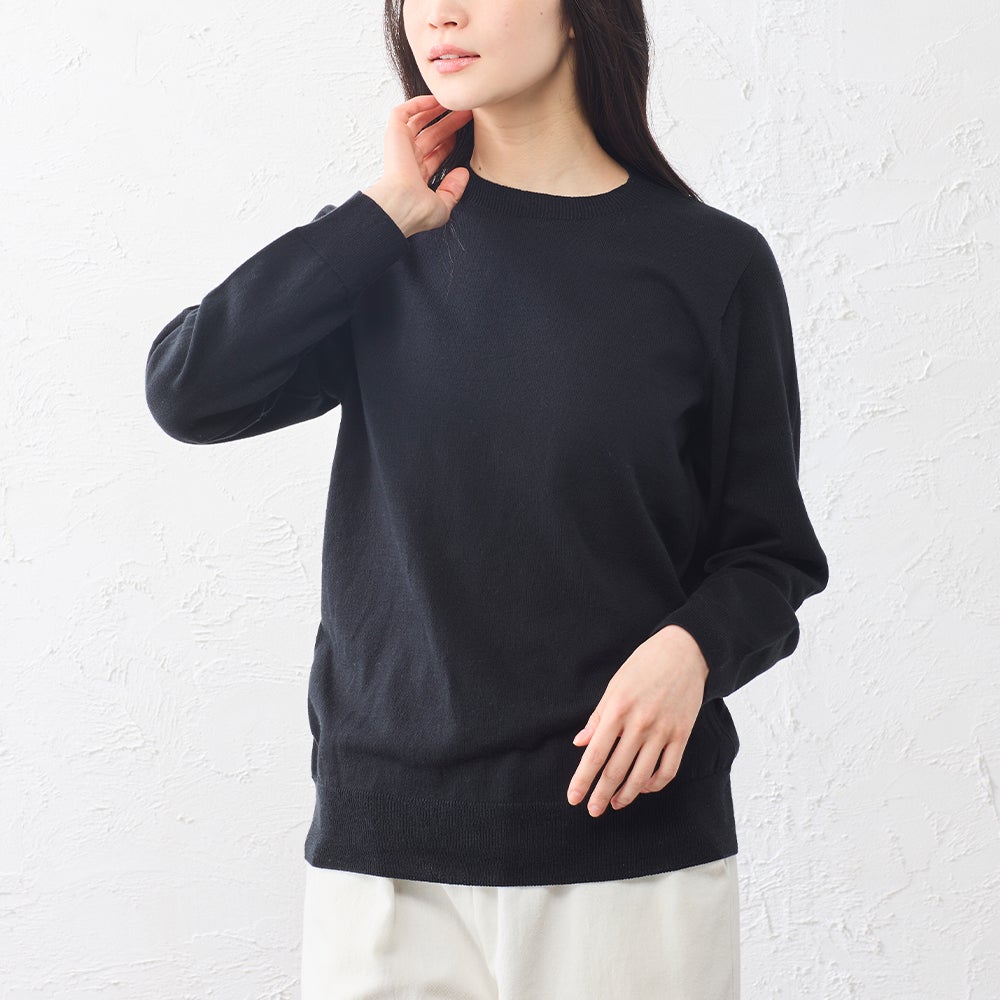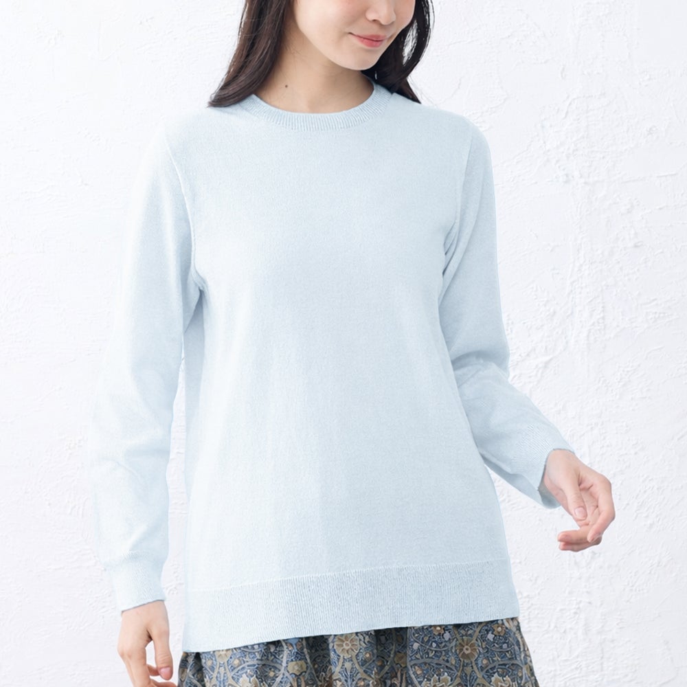肌にやさしく寄り添う綿100のオーガニックコットンを使用し、毎日心地よく着られる一枚に仕立てました。 農薬や化学肥料に頼らず育てられた綿は、繊維が丸くなめらかで、敏感な肌にもやさしくなじみます。やわらかな風合いと自然な着心地が魅力です。 縫い目のないホールガーメント®製法により、ごろつきや違和感を感じにくく、身体に沿う自然なフィット感を実現。長時間の着用でもストレスなく過ごせます。 シンプルで使いやすいデザインは、1枚着としてもインナーとしても活躍し、幅広いコーデに馴染む定番ニットです。