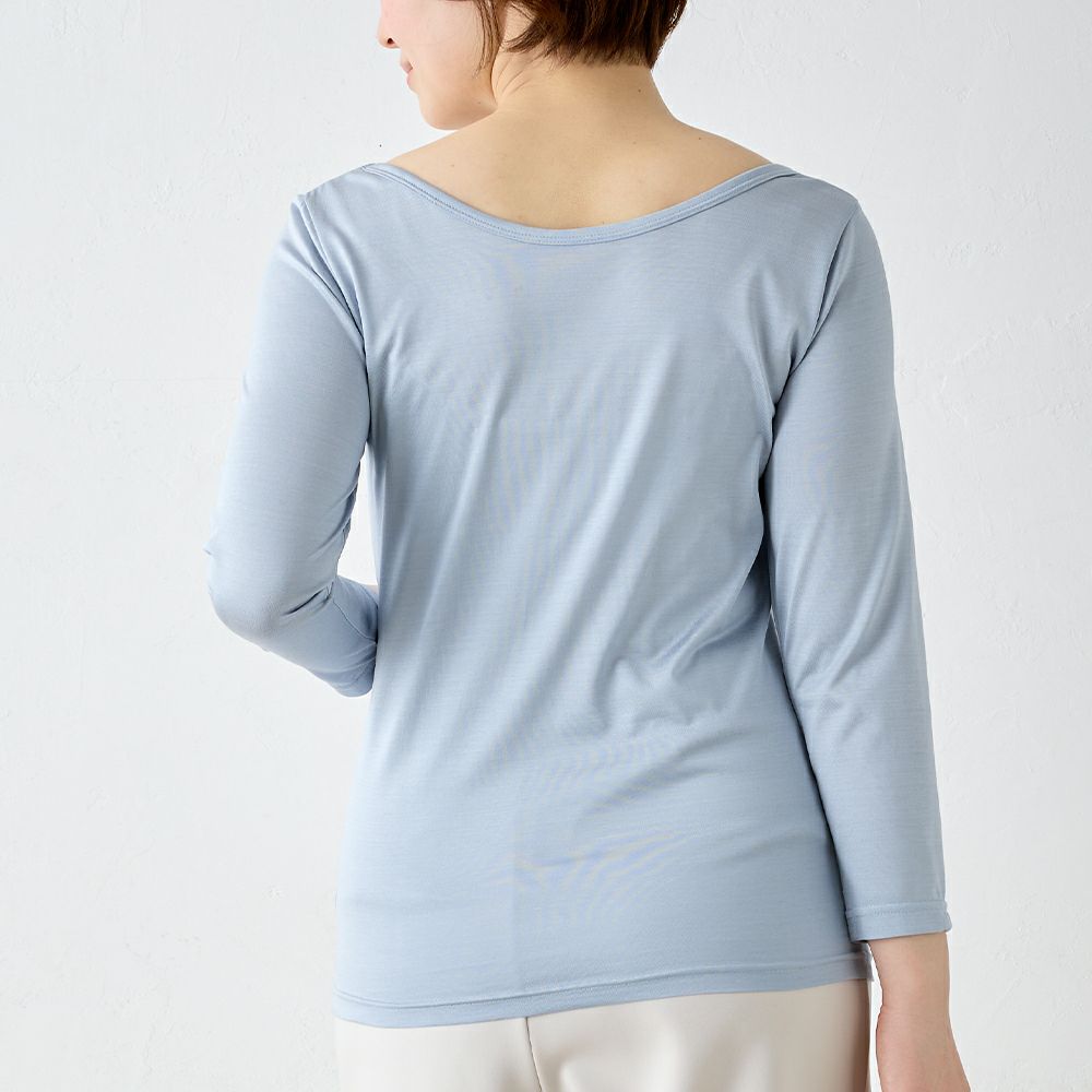 他の画像を見る Aオフホワイト Bグレー Cモカ Dラベンダー Eサックス Fブラック メール便 送料無料 極上の着心地、滑らかな肌触り 【日本製】シルク バレエネックカットソー カートに入れる お気に入りに登録する 当店特別価格 ¥ 9,600 税込