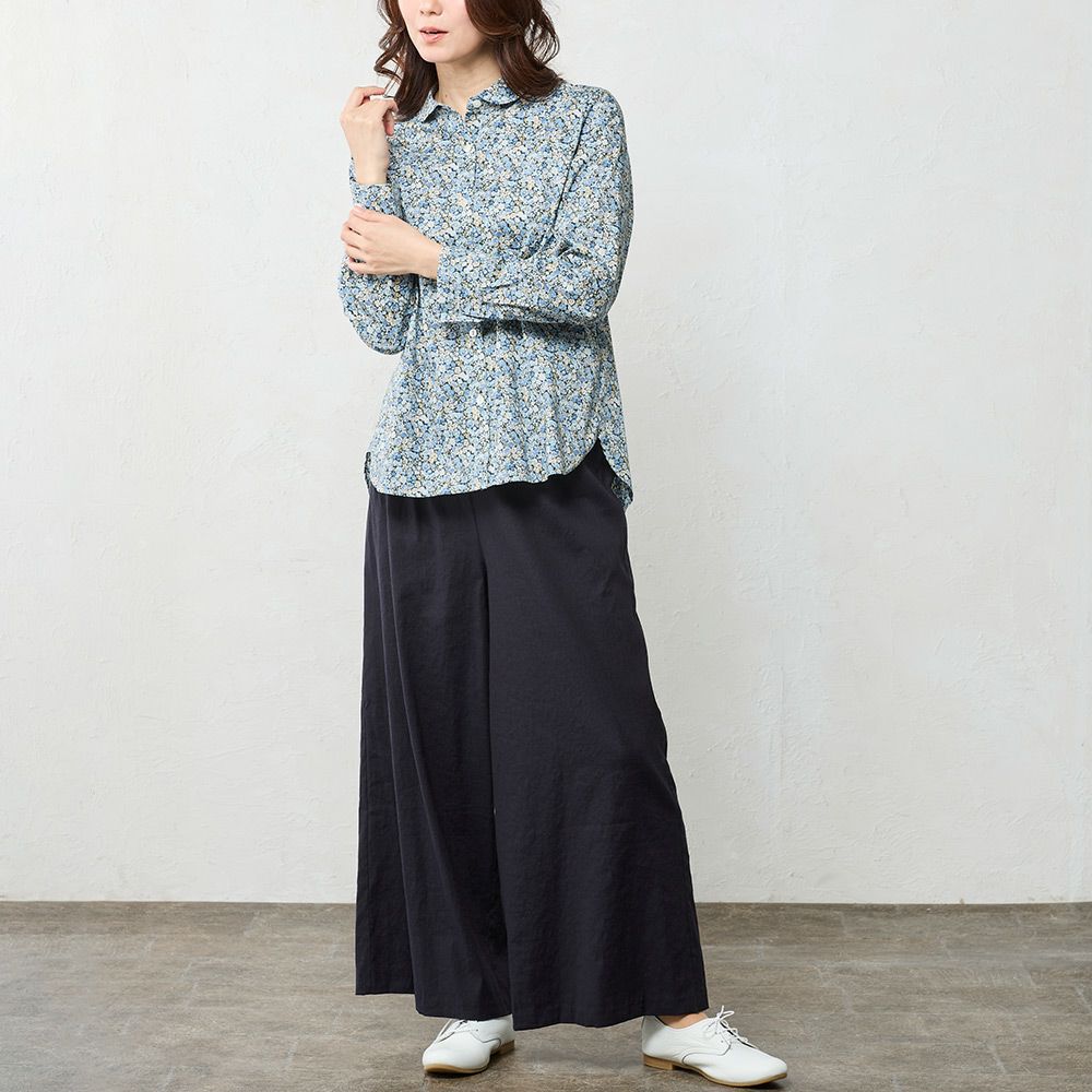 リバティプリント 丸襟シャツ