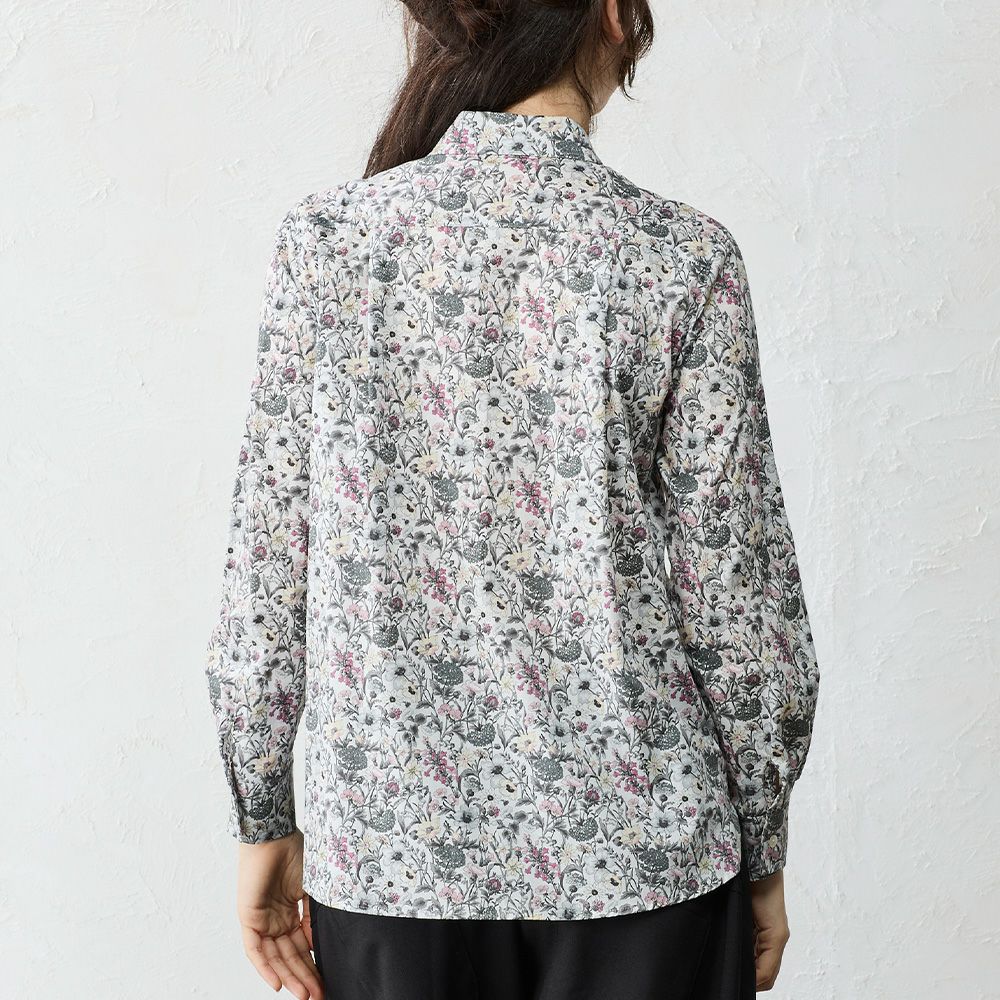 品よく華やぐ、リバティプリント生地を使用したシャツ。
