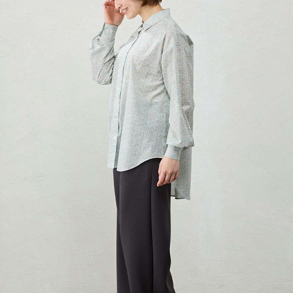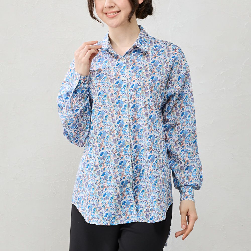 品よく華やぐ、リバティプリント生地を使用したベーシックなブラウス。 コーディネートを華やかに彩る主役級の1着。 羽織としても、ジャンパースカートやニットなどのレイヤードアイテムにも◎