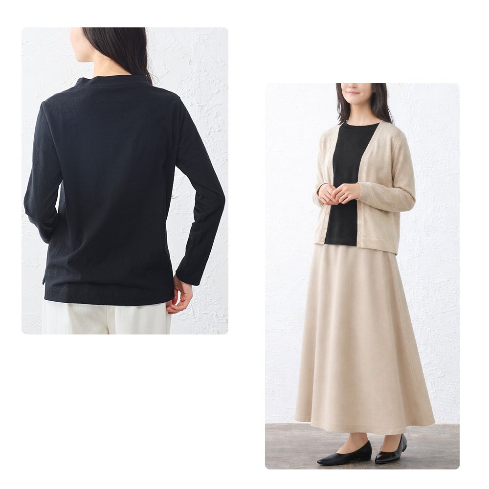 他の画像を見る Aベージュ Bネイビー Cブラック 尾州産素材 メール便 送料無料 着回し力バツグンの品よく見えるワザありカットソー マジカル強撚コットン モックネックカットソー カートに入れる お気に入りに登録する 当店特別価格 ¥ 4,900 税込