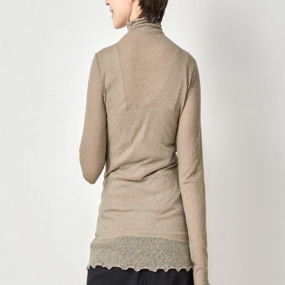 他の画像を見る Aオフホワイト Bベージュ Cボルドー Dブラック Eラベンダー Fオレンジ Gグリーン メリノウール 尾州産素材 メール便 送料無料 透け感が魅力のシースルーハイネック メリノウール シアー ハイネック カートに入れる お気に入りに登録する 当店特別価格 ¥ 5,800 税込