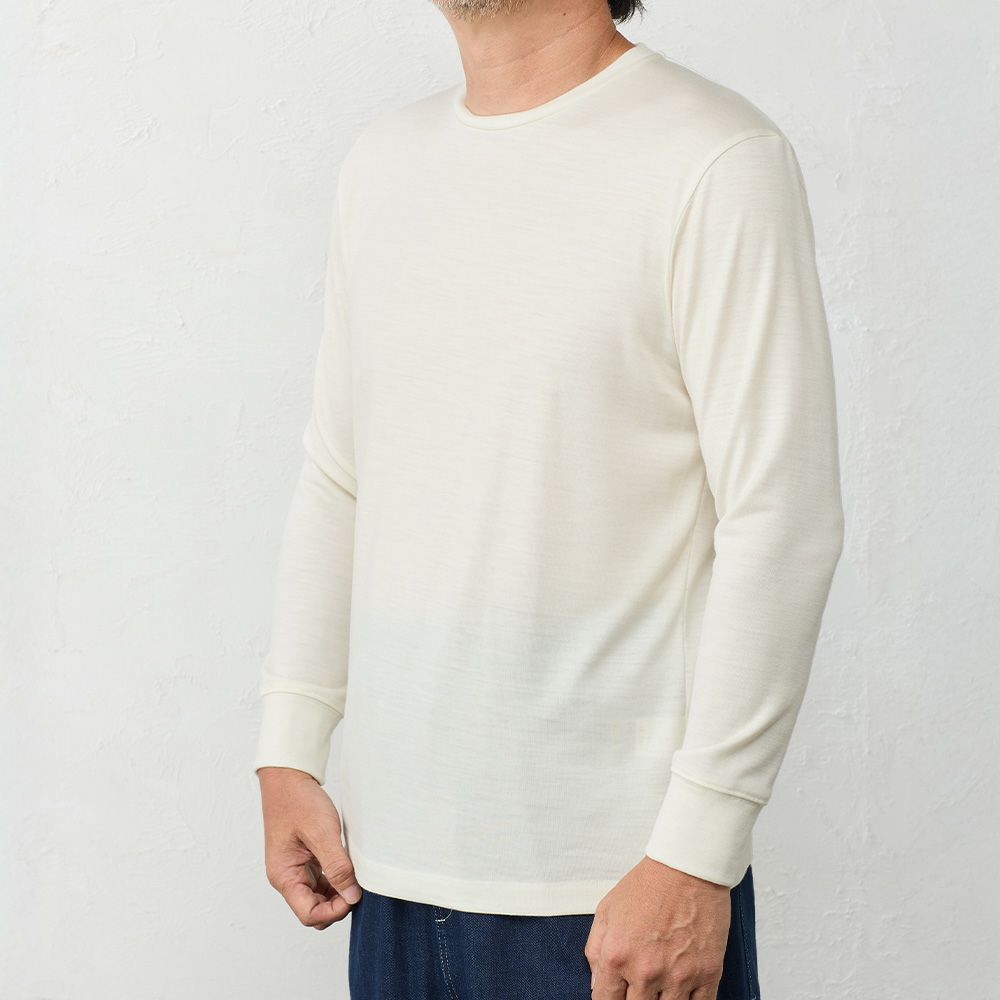 他の画像を見る Aオフホワイト Bベージュ Cグレー Dブラック メリノウール 尾州産素材 メール便 送料無料 最上級のメリノウールを使用した定番の長袖Tシャツ 【Super140's】メンズ メリノウール 長袖Tシャツ カートに入れる お気に入りに登録する 当店特別価格 ¥ 9,500 税込