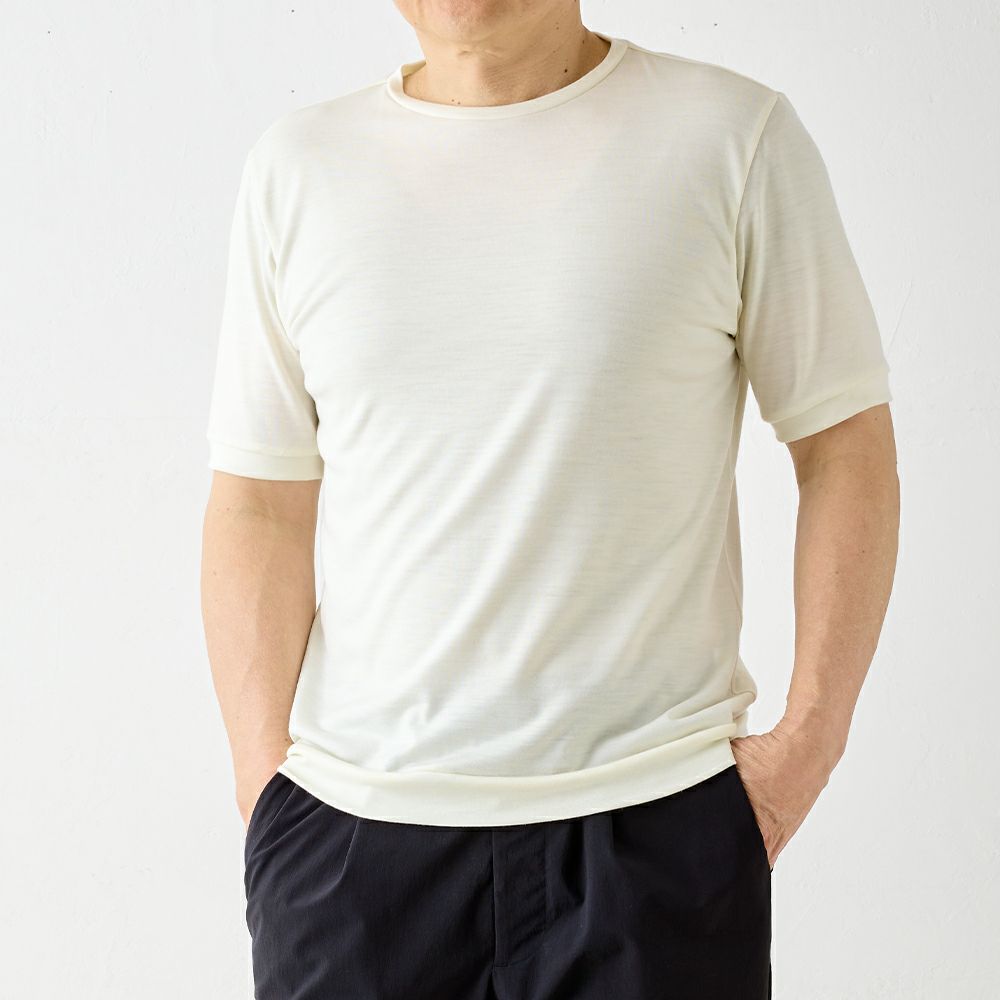 他の画像を見る Aオフ Bグレー Cブラック メリノウール 尾州産素材 メール便 送料無料 最上級のメリノウールを使用した一枚でもインナーでも使えるアイテム 【Super140's】メンズ メリノウール半袖Tシャツ カートに入れる お気に入りに登録する 当店特別価格 ¥ 8,500 税込