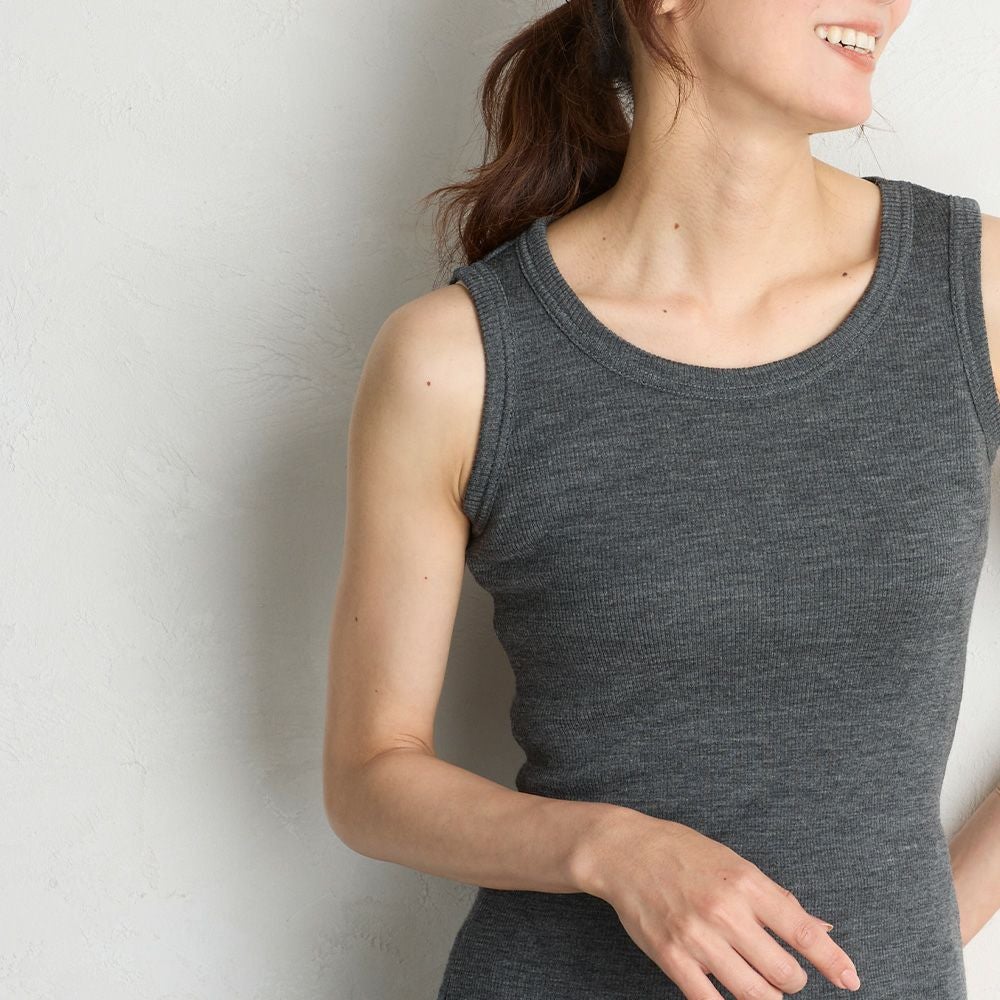 他の画像を見る Aオフ Bグレージュ Cチャコール Dブラック Eワイン Fネイビー メリノウール 尾州産素材 メール便 送料無料 定番メリノC メリノウールリブタンクトップ メリノウールリブタンクトップ カートに入れる お気に入りに登録する 当店特別価格 ¥ 3,990 税込