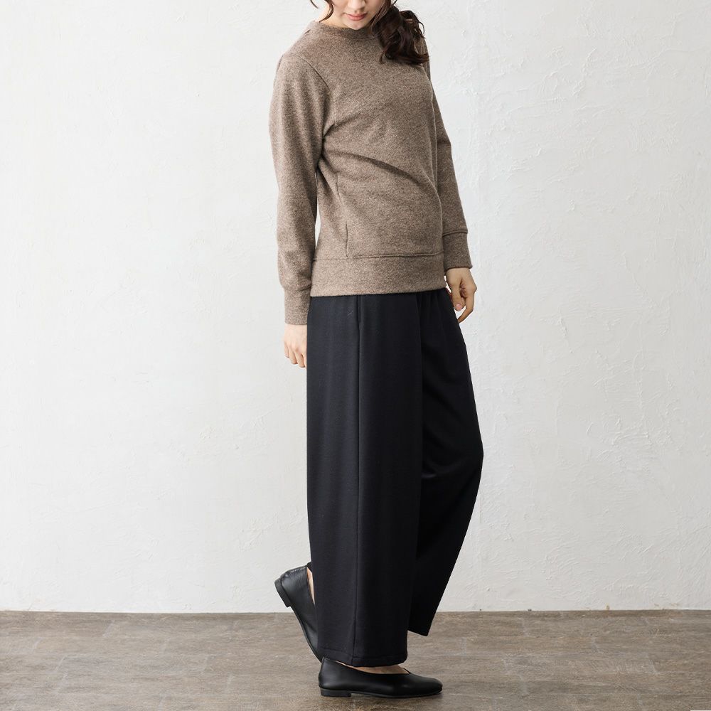 どうしてもカジュアルになりすぎるコットンのスウェット。カジュアルは楽しみたいけれど、ラフすぎるのは嫌。そんな大人の女性に向けた上品スウェット。天然の光沢があり落ち着いた色合い。シンプルですっきり見えするシルエットで、一枚で大人の上品カジュアルスタイルが叶うアイテム。軽くてかさばらないので、上からアウターも着用いただけます。