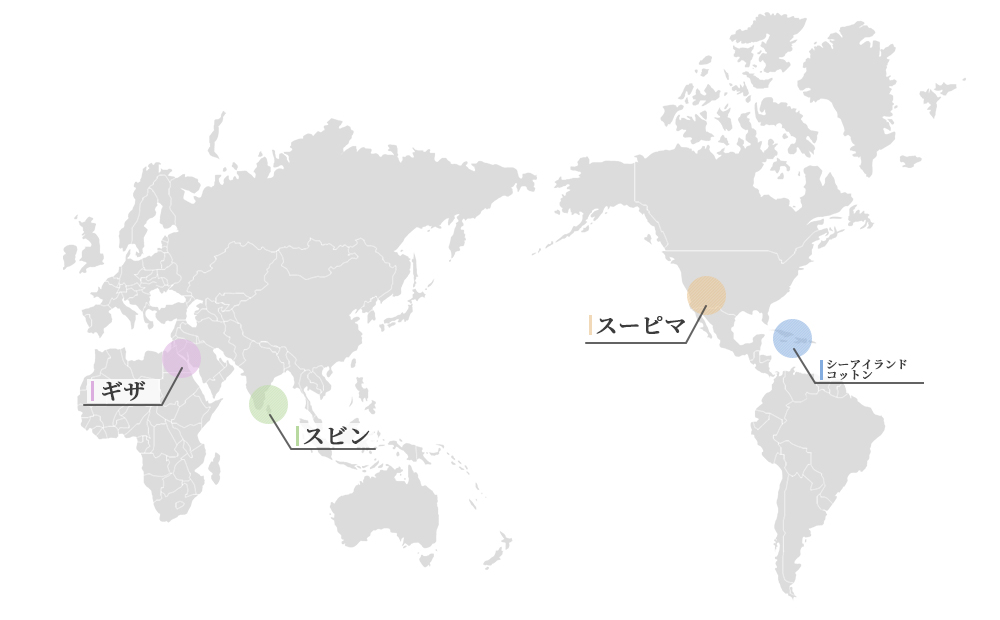 同じ繊維長でもコットンの産地によって品質や風合いが異なります。