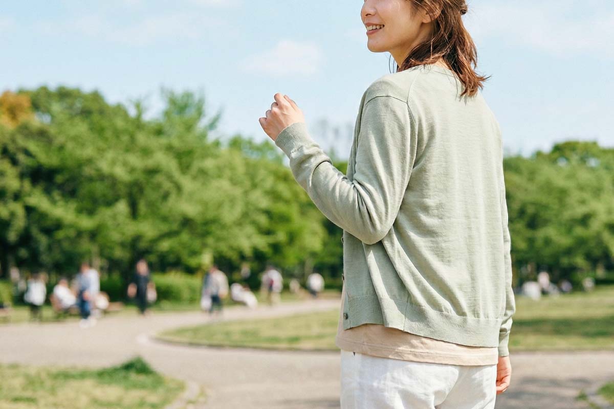 汗ばむ日も、冷房の効いた室内も、一枚で調整しやすいのが強みです。