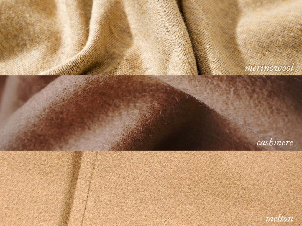 密度が高く、風を通さない。上品なツヤがあり、型崩れもしにくい防寒素材。