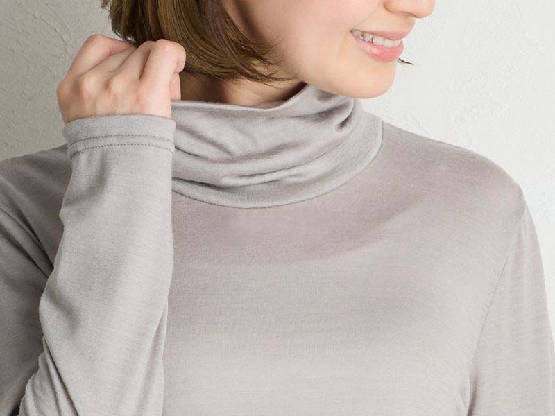 保温性が高く、チクチクしない。吸湿発熱で暖かさが持続。冬のインナーに最適。