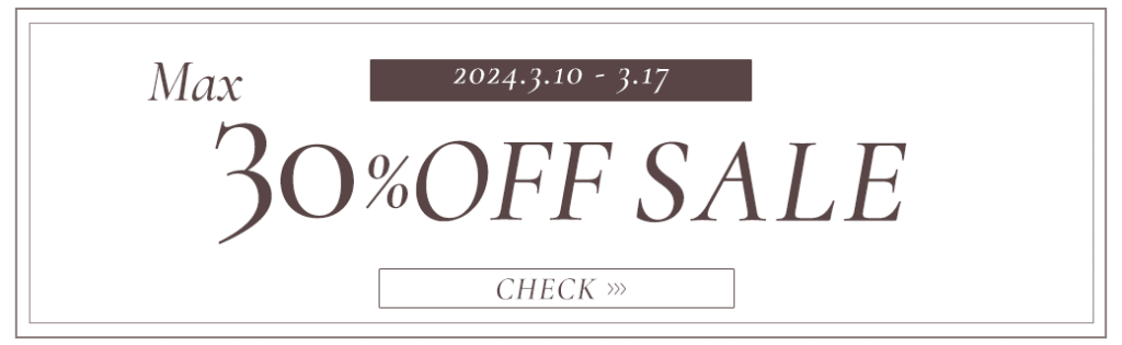 3月10日から3月17日までの期間限定で、新作のアイテムも対象のタイムセール開催致します!