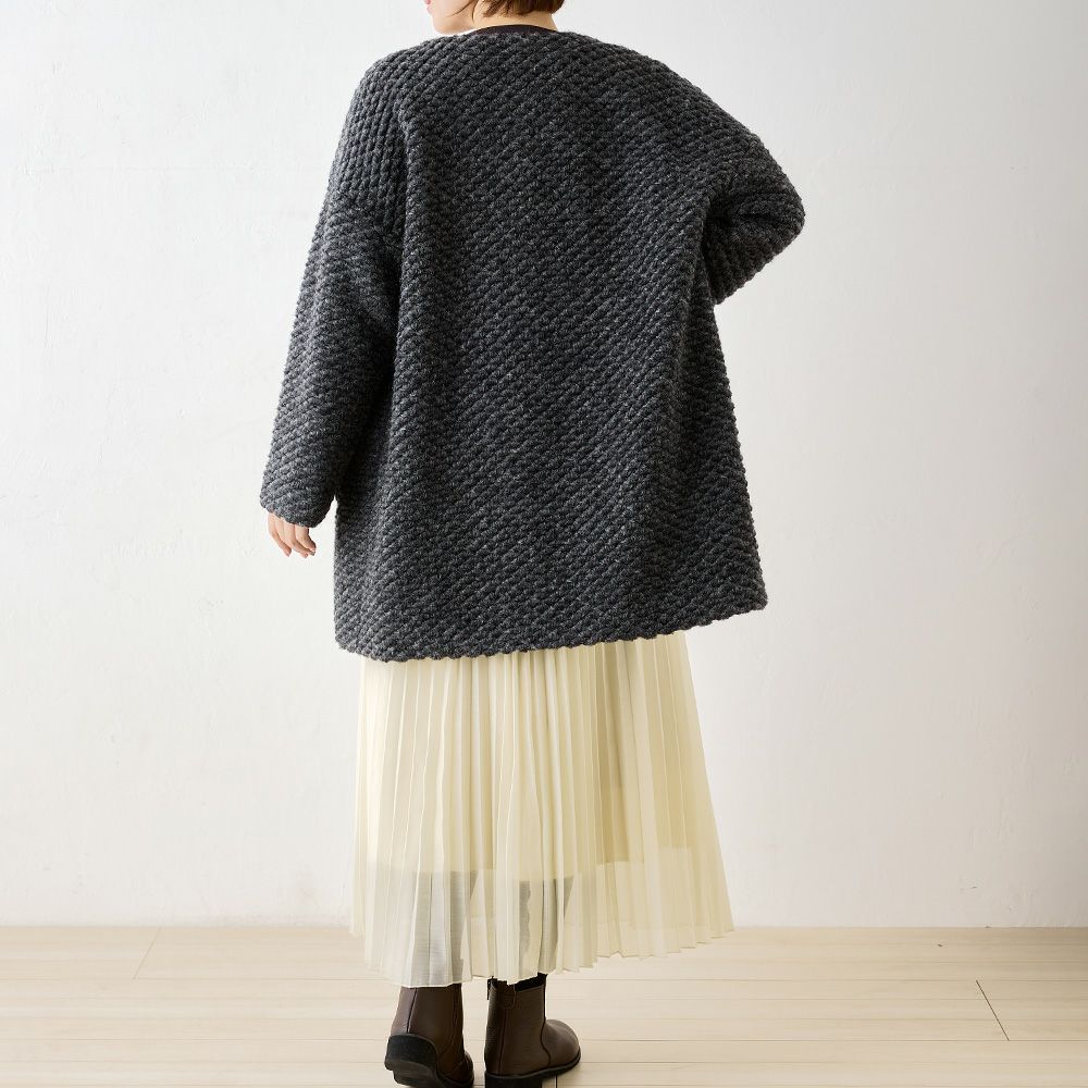 他の画像を見る 送料無料 ボリューム感のある生地とシンプルなノーカラーデザインで品よくまとまるミドル丈コート イタリー生地 軽量ウール ノーカラーコート カートに入れる お気に入りに登録する (0) 当店特別価格 ¥ 21,000 税込