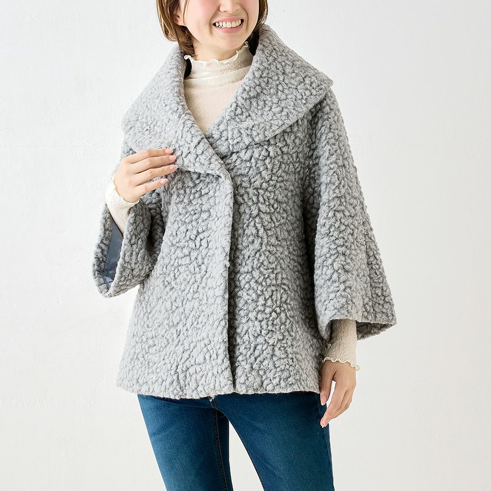 他の画像を見る 送料無料 ふんわり素材とボリュームショールで大人可愛いが叶うショート丈コート イタリー生地 軽量ウール ショートコート カートに入れる お気に入りに登録する (0) 当店特別価格 ¥ 19,600 税込
